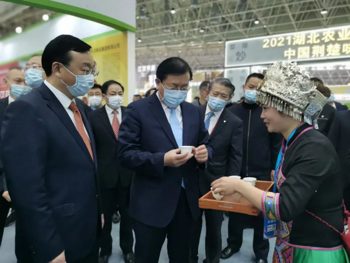 王忠林省长在省农业农村厅厅长吴祖云、楚商联合会会长陈东升的陪同下来到湖北省茶产业链展馆,品尝了雷火官方端入口-雷火(中国)恩施玉露。